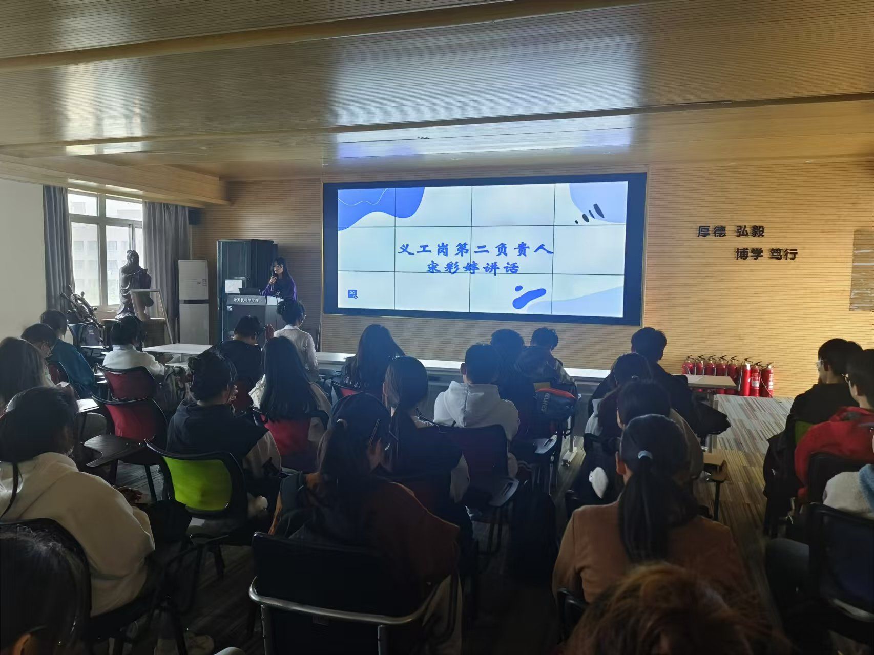 接着,义工岗第二负责人宋彩婷对各年级受助学生义工岗工时的完成情况做了总结,指出了工作中存在的不足和今后整改的措施,提出了明年对各年级义工岗负责人及受助学生参与义工岗活动的要求。