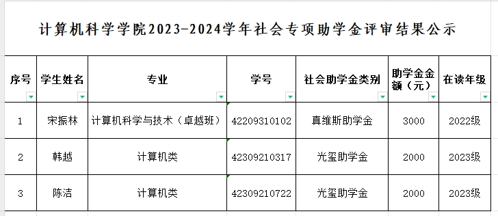 best365官方网站登录入口2023-2024学年社会专项助学金评审结果公示