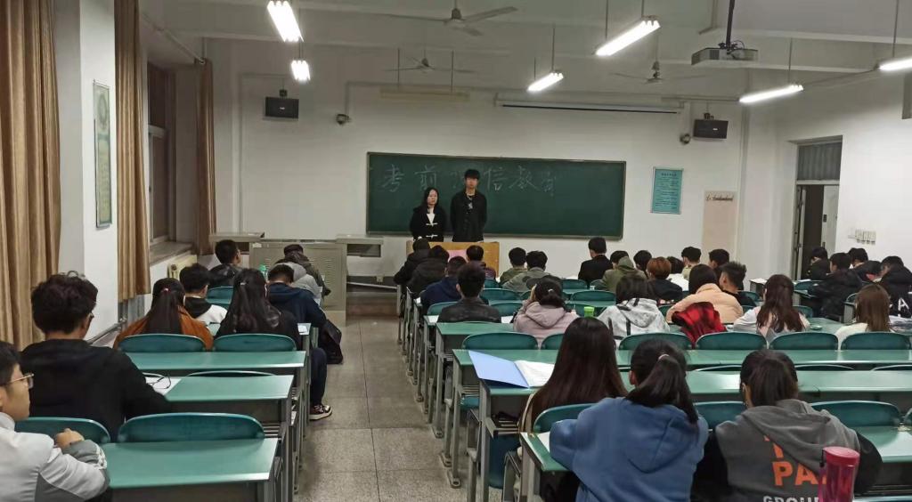 2020级辅导员左温慧首先说明了考试违规行为的认定以及考试作弊带来的严重影响,告诫学生们一定要诚信应对考试,杜绝考试作弊,给同学们敲响了警钟。随后,左温慧又详细介绍了考试的注意事项,如带好考试证件物品、服从监考老师安排、注意合理分配考试时间等。最后,她向学生们提出期望,希望大家可以认真对待大学每一次考试,为自己呈上一份满意的答卷。