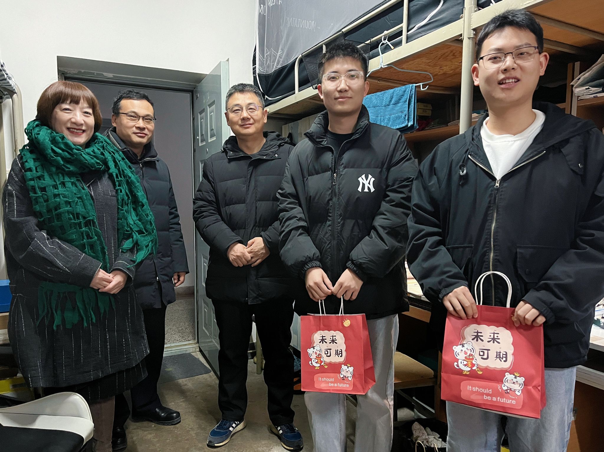 下午16时许,学院党委书记赵雪曼、院长薛涛、党委副书记赵勇进及全体辅导员深入宿舍、图书馆为考研学子送上暖心礼包。赵雪曼书记鼓励考研学生:“考研不仅是对知识的考察,更是对毅力和韧性的考验。在备考的路上,你们或许会遇到挫折,但请相信,每一次跌倒都会让你们变得更强大。愿你在追求梦想的道路上永不放弃,不断进步。”薛涛院长送上祝福:“考研是一条充满挑战和机遇的道路,是一个积累知识、锻炼能力的宝贵机会。请相信自己,在未来的研究和学习中,你们必定能够披荆斩棘,收获属于自己的成功。让考研成为你们实现梦想的翅膀,飞向更高更远的未来。”