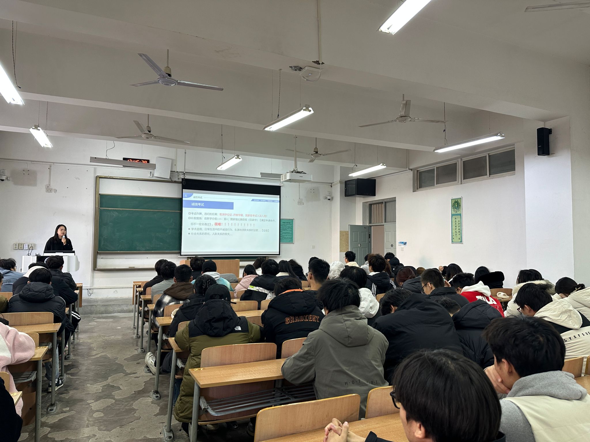 左温慧首先说明了考试违规行为的认定以及考试作弊带来的严重影响,告诫学生们一定要诚信应对考试,杜绝考试作弊,给同学们敲响了警钟。随后,左温慧又详细介绍了考试的注意事项,如带好考试证件物品、服从监考老师安排、注意合理分配考试时间等。最后,她向学生们提出期望,希望大家可以认真对待大学每一次考试,为自己呈上一份满意的答卷。